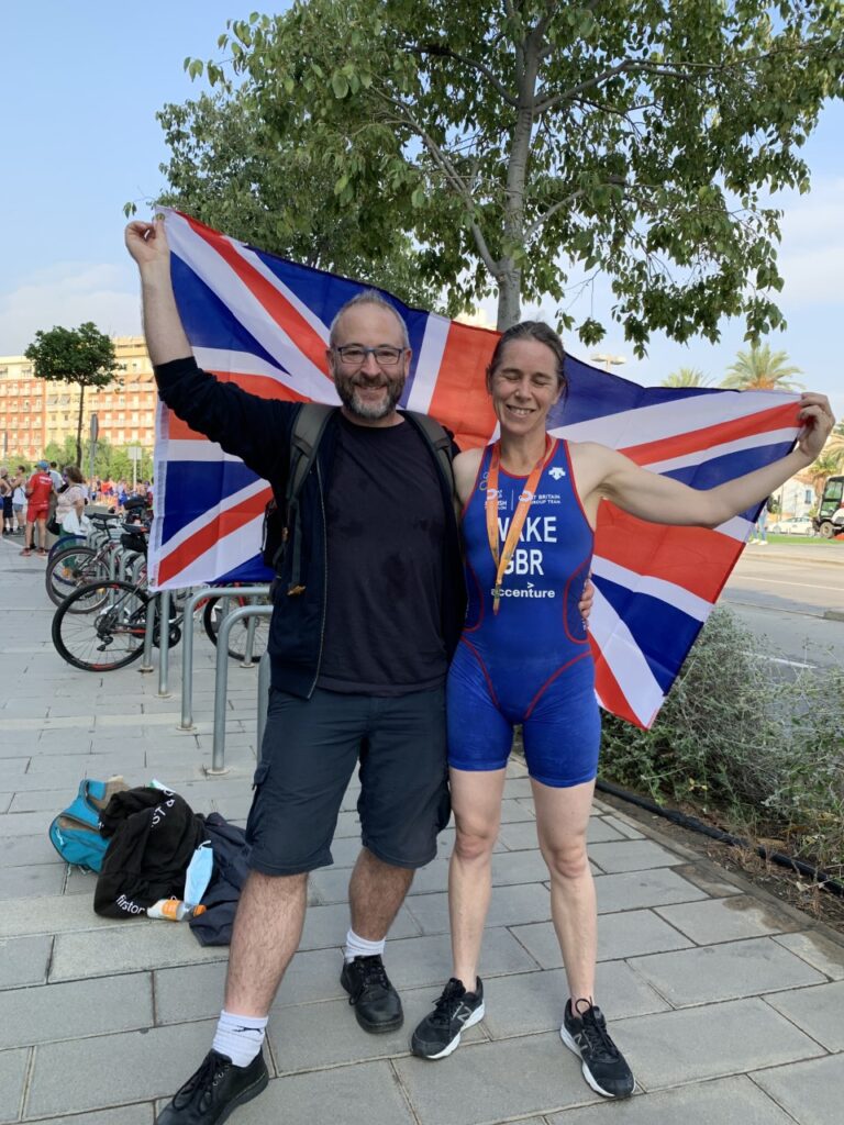My training commitment, focus and hours all ramped up. I enjoyed some lovely cycles and open water swim sessions around ship wrecks in beautiful bays on a holiday in Orkney and all was going well, Until I came down with a bad flu-like illness (fortunately not COVID). I had take a week off of training and with only 2-3 weeks to go before the event, I couldn’t climb a flight of stairs without being extremely breathless. I was on the verge of pulling out; but got some coaching reassurances not panic, and to rest. By this point the stress and admin burden of trying to travel and race with Covid restrictions had kicked in. Our flights were cancelled 4 times and needed rearranged; Including logistics of re-booking bikes, and the COVID regulations for travelling and racing kept changing. Covid rates were rising again threatening the chances of leaving the country with a negative COVID test. The GB team age face book group was a good source of sharing the admin confusion and stress.. at least it diverted from race nerves. Fortunately I was well enough to manage a good solid two weeks training before the race and by the time I’ve got to Valencia actually felt reasonably healthy and prepared. Travel went smoothly, the kit arrived and the day before allowed a good opportunity to do a bit of swimming and diving practice in the harbour. By this point it was 95% going to be wetsuit illegal.. (I was worried about not practicing sea swims without a wetsuit.. but actually the sea temperature was warmer than a swimming pool! ) and did a good course recce, and final bit of pre-race training.